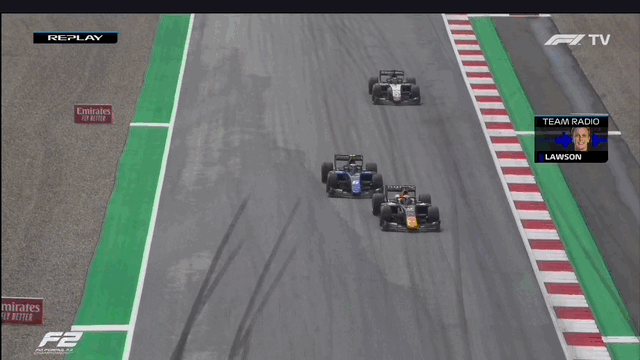In this sequence, Daruvala’s tires fall off a cliff. He is losing a ton of grip as he enters every corner, hesitating to turn the car through all the corners. Sargeant’s tire has much more life and is responding more to him.